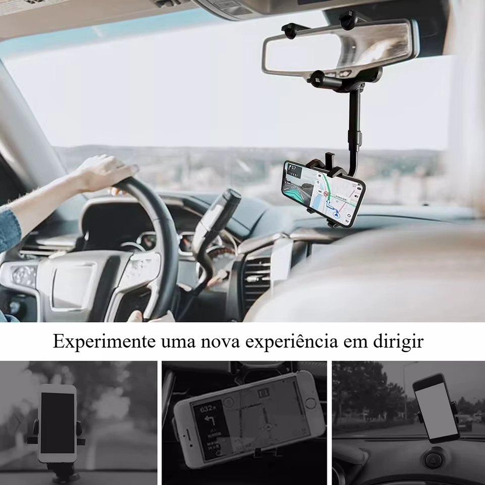 Suporte de Celular para Espelho Retrovisor com Rotação 360° Fixação Segura e Ajustável